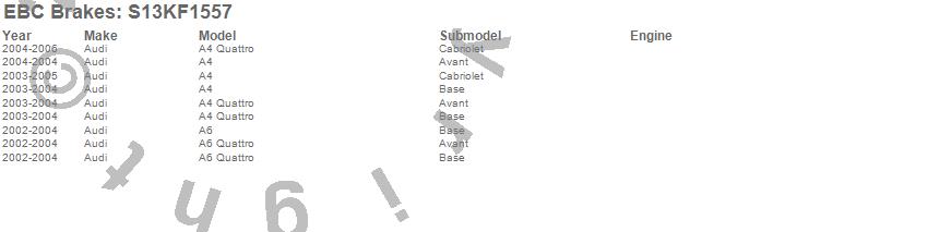 Below is an abbreviated list of applications for the S13 Kits Yellowstuff and RK Rotors.