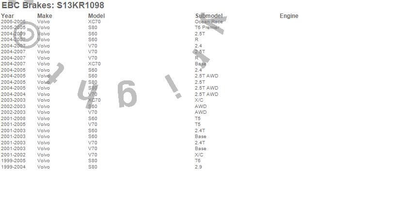 Below is an abbreviated list of applications for the S13 Kits Yellowstuff and RK Rotors.
