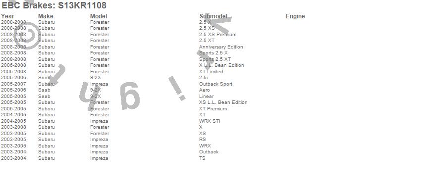 Below is an abbreviated list of applications for the S13 Kits Yellowstuff and RK Rotors.
