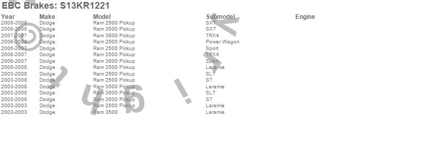 Below is an abbreviated list of applications for the S13 Kits Yellowstuff and RK Rotors.