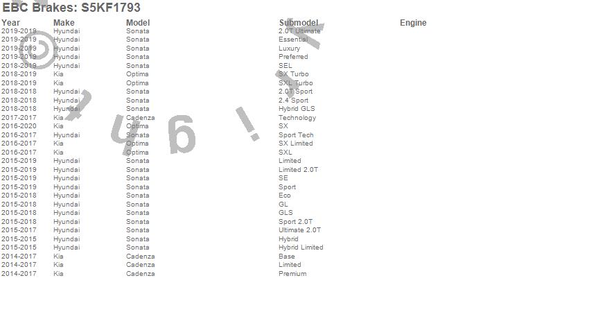 Below is an abbreviated list of applications for the S5 Kits Yellowstuff And GD Rotors.