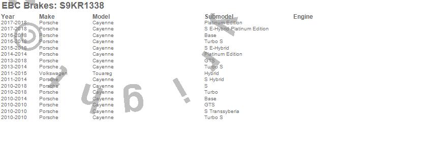 Below is an abbreviated list of applications for the S9 Kits Yellowstuff and USR Rotors.