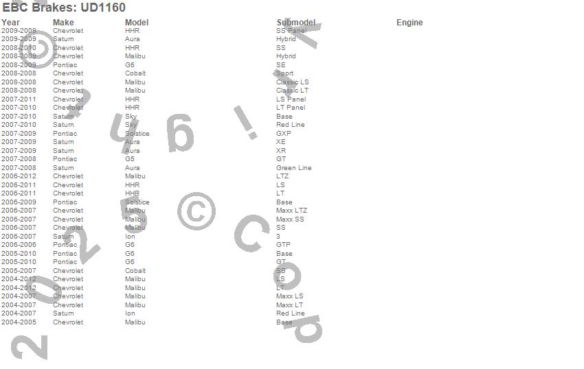 Below is an abbreviated list of applications for the Ultimax OEM Replacement Brake Pads.
