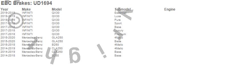 EBC Brakes UD1694 Ultimax OEM Replacement Brake Pads FMSI Pad No. D1694 - Pad Dimensions: 144 x 71.5 x 19.5mm