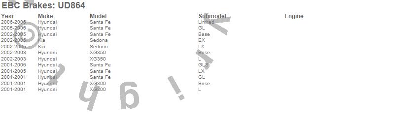 EBC Brakes UD864 Ultimax OEM Replacement Brake Pads FMSI Pad No. D864 - Vented - 294mm Dia. - 46mm Height - 26mm Thick - 69mm Center Hole Dia. - Pad Dimensions: 149 x 60 x 17mm