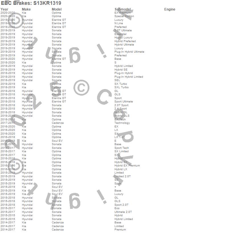 Below is an abbreviated list of applications for the S13 Kits Yellowstuff and RK Rotors.