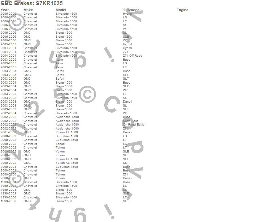 Below is an abbreviated list of applications for the S7 Kits Orangestuff and BSD Rotors.