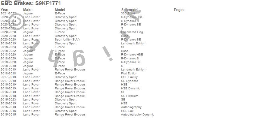 Below is an abbreviated list of applications for the S9 Kits Yellowstuff and USR Rotors.
