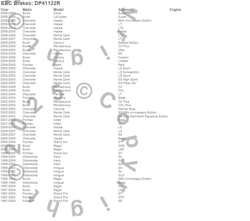 Alero, Allure, Aztek, Century, Grand Am, Grand Prix, Impala, Intrigue, LaCrosse, Montana, Monte Carlo, Regal, Rendezvous, Venture, Buick, Chevrolet, Oldsmobile, Pontiac, 2010, 2009