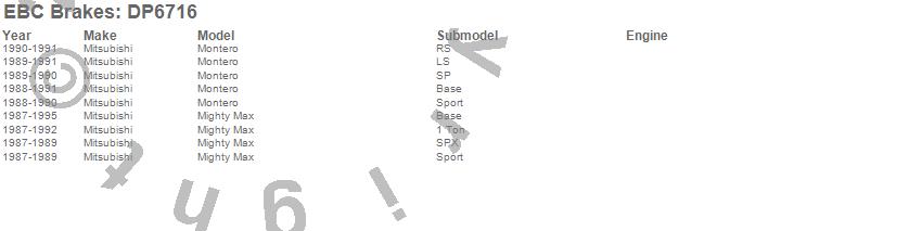 Below is an abbreviated list of applications for the 6000 Series Greenstuff Truck/SUV Brakes Disc Pads.