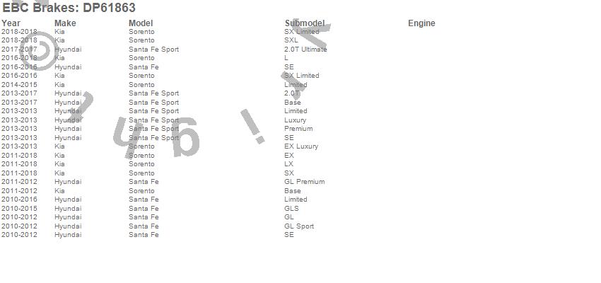 Below is an abbreviated list of applications for the 6000 Series Greenstuff Truck/SUV Brakes Disc Pads.
