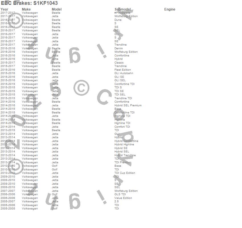 Beetle, Golf, Jetta, Volkswagen, 2017, 2016, 2015, 2014, 2013, 2010, 2009, 2008, 2007, 2006, 2005