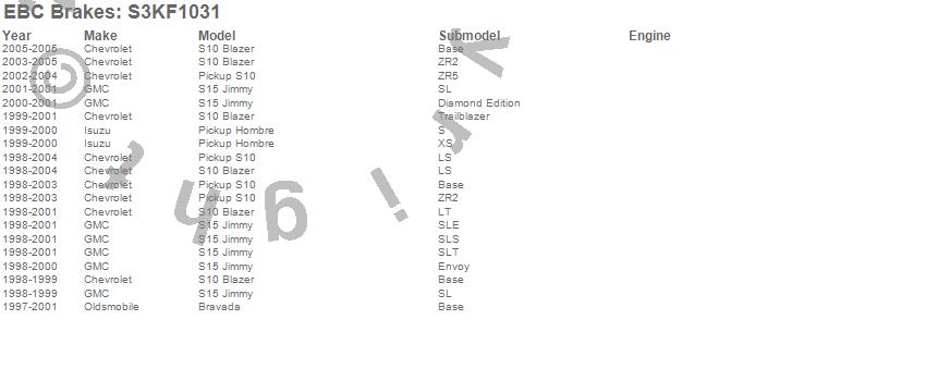 Below is an abbreviated list of applications for the S3 Kits Greenstuff 6000 and GD Rotors Truck/SUV.
