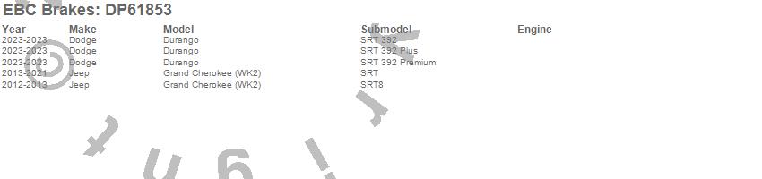 Below is an abbreviated list of applications for the 6000 Series Greenstuff Truck/SUV Brakes Disc Pads.