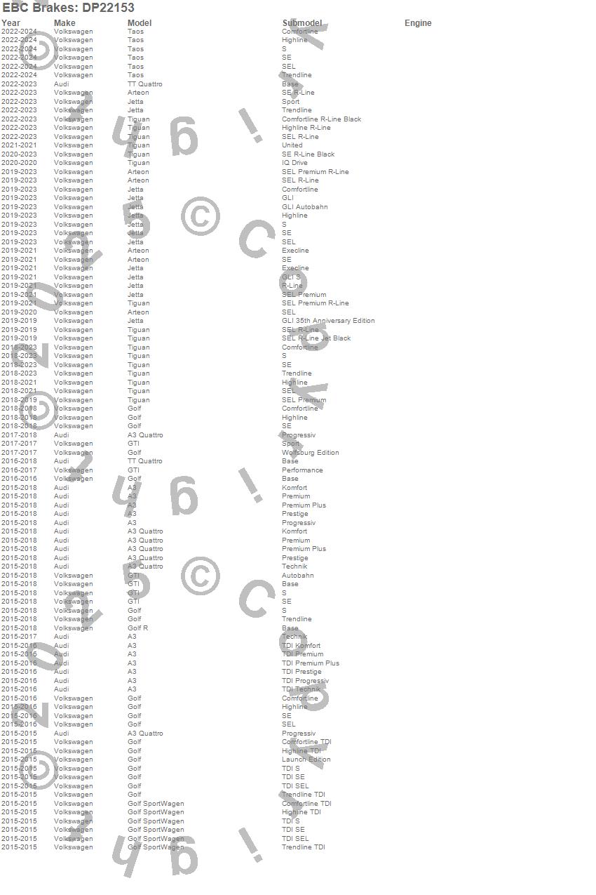Below is an abbreviated list of applications for the Greenstuff 2000 Series Sport Brake Pads.