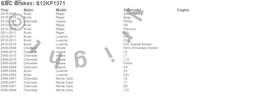 Below is an abbreviated list of applications for the S12 Kits Redstuff and RK Rotors.