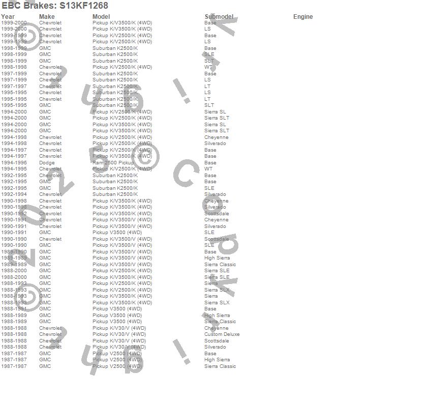 Below is an abbreviated list of applications for the S13 Kits Yellowstuff and RK Rotors.