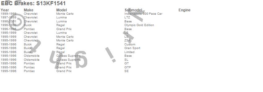 Below is an abbreviated list of applications for the S13 Kits Yellowstuff and RK Rotors.