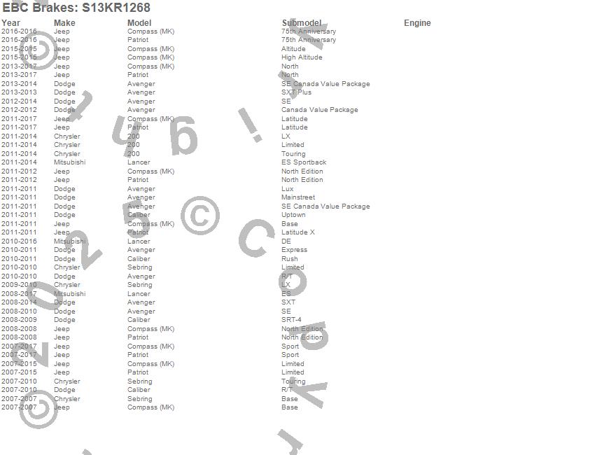 Below is an abbreviated list of applications for the S13 Kits Yellowstuff and RK Rotors.