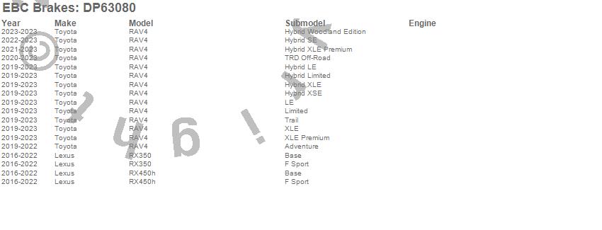 Below is an abbreviated list of applications for the 6000 Series Greenstuff Truck/SUV Brakes Disc Pads.