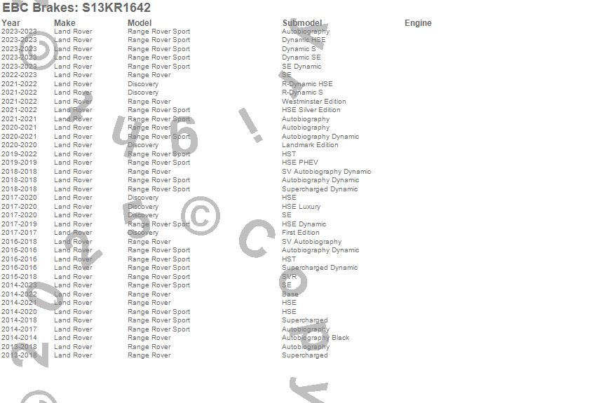 Below is an abbreviated list of applications for the S13 Kits Yellowstuff and RK Rotors.