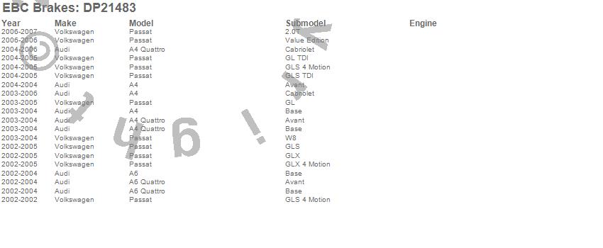 Below is an abbreviated list of applications for the Greenstuff 2000 Series Sport Brake Pads.