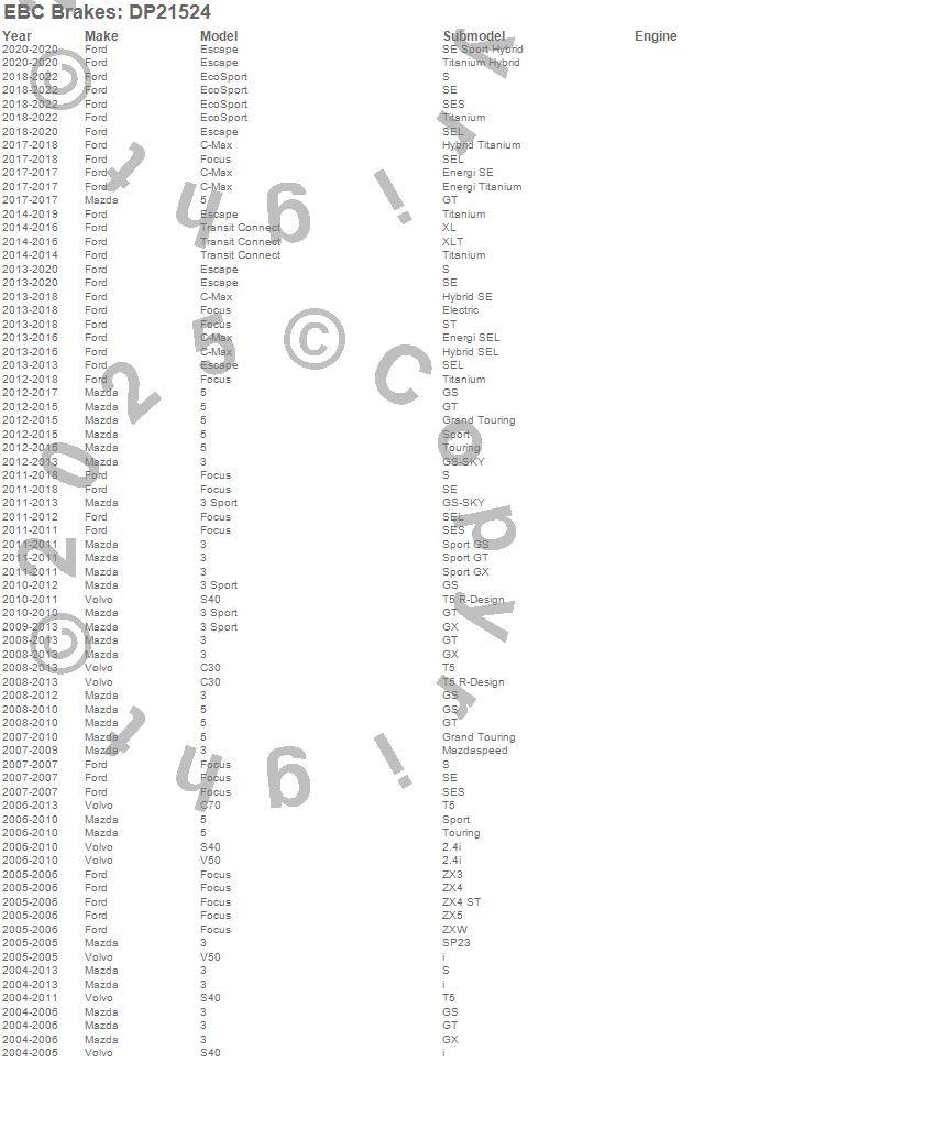 Below is an abbreviated list of applications for the Greenstuff 2000 Series Sport Brake Pads.