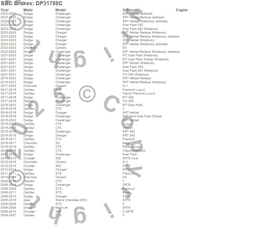 300, Camaro, Challenger, Charger, CTS, Grand Cherokee (WK), Magnum, SS, STS, Cadillac, Chevrolet, Chrysler, Dodge, Jeep, 2024, 2023, 2022, 2021, 2020, 2019