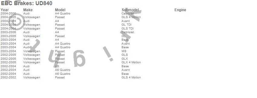 Below is an abbreviated list of applications for the Ultimax OEM Replacement Brake Pads.