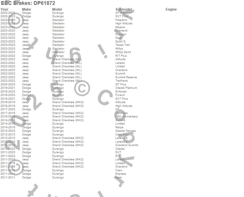 Below is an abbreviated list of applications for the 6000 Series Greenstuff Truck/SUV Brakes Disc Pads.