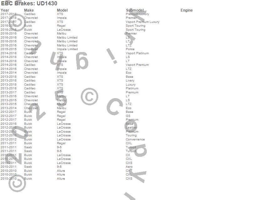 Below is an abbreviated list of applications for the Ultimax OEM Replacement Brake Pads.