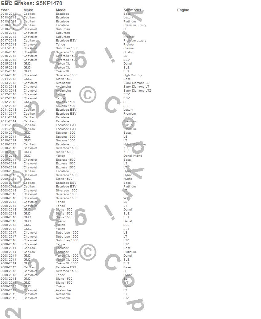 Below is an abbreviated list of applications for the S5 Kits Yellowstuff And GD Rotors.