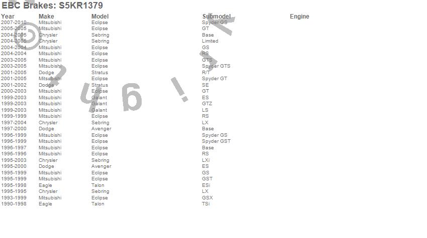 Below is an abbreviated list of applications for the S5 Kits Yellowstuff And GD Rotors.