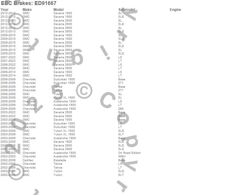 Below is an abbreviated list of applications for the Truck/SUV Extra Duty Brake Pads.