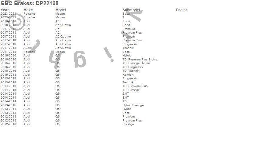 Below is an abbreviated list of applications for the Greenstuff 2000 Series Sport Brake Pads.