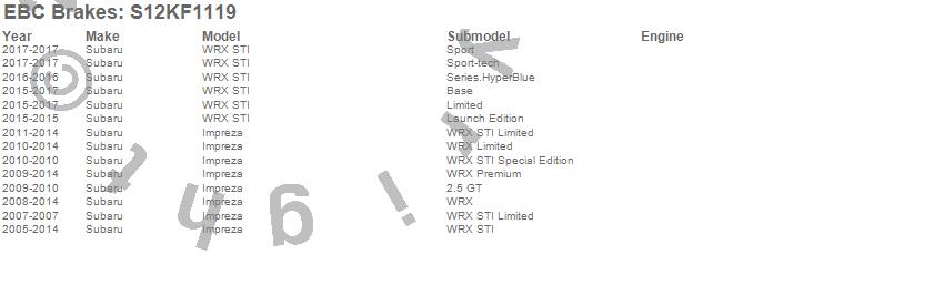 Below is an abbreviated list of applications for the S12 Kits Redstuff and RK Rotors.