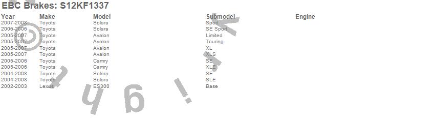 Below is an abbreviated list of applications for the S12 Kits Redstuff and RK Rotors.