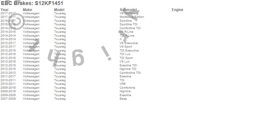 Below is an abbreviated list of applications for the S12 Kits Redstuff and RK Rotors.
