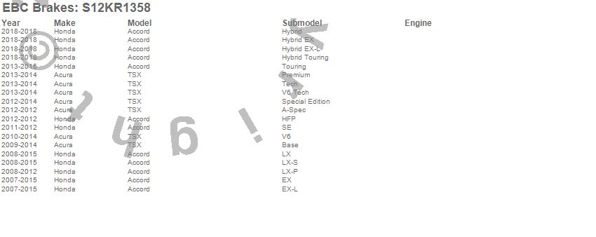 Below is an abbreviated list of applications for the S12 Kits Redstuff and RK Rotors.