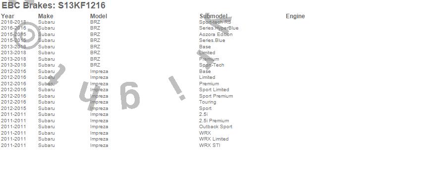 Below is an abbreviated list of applications for the S13 Kits Yellowstuff and RK Rotors.