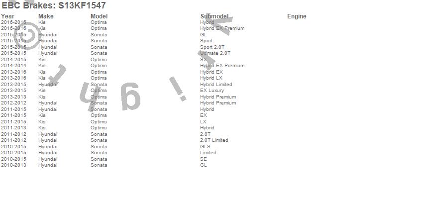 Below is an abbreviated list of applications for the S13 Kits Yellowstuff and RK Rotors.
