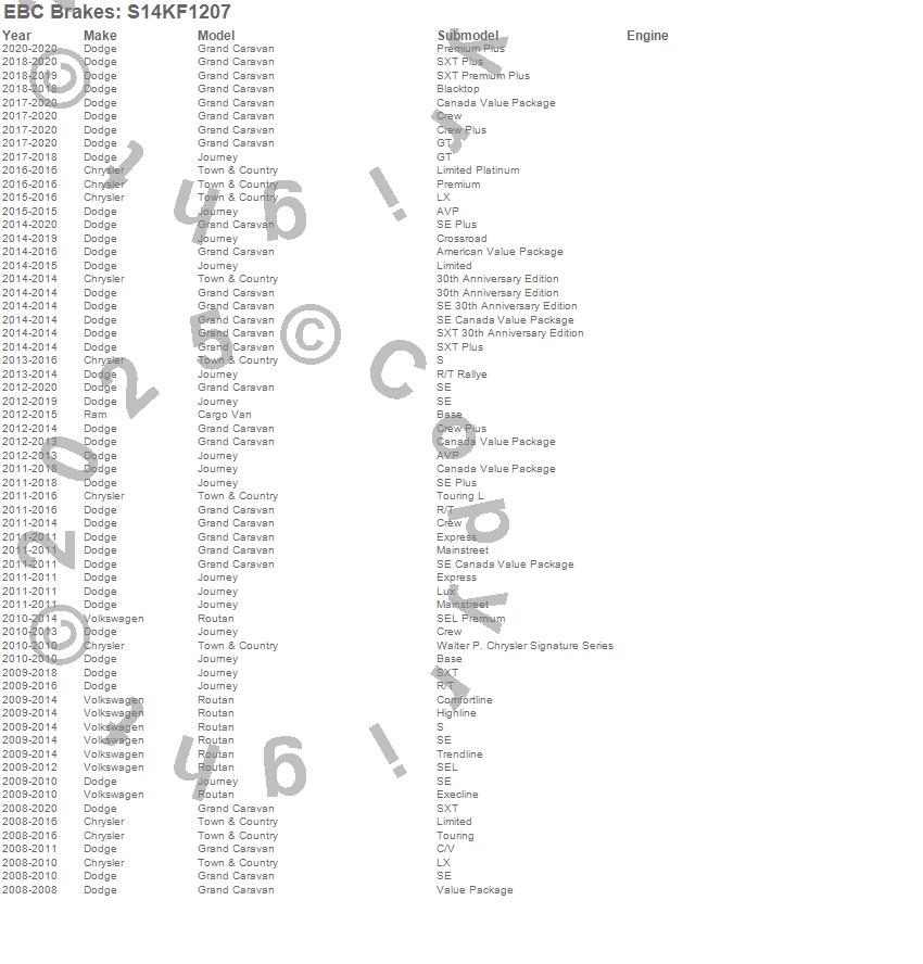 Below is an abbreviated list of applications for the S14 Kits Greenstuff and RK Rotors SUV.