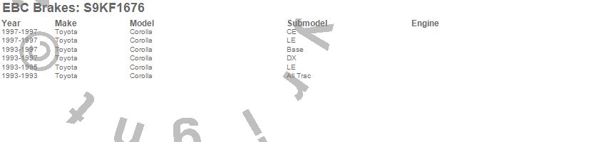 Below is an abbreviated list of applications for the S9 Kits Yellowstuff and USR Rotors.