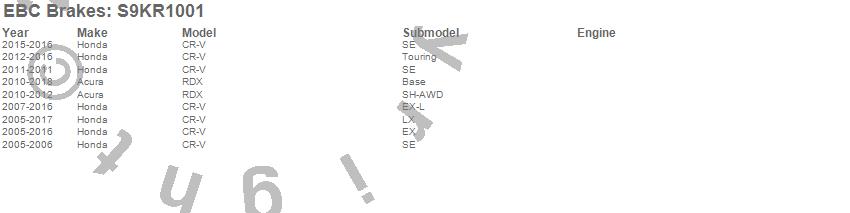 Below is an abbreviated list of applications for the S9 Kits Yellowstuff and USR Rotors.