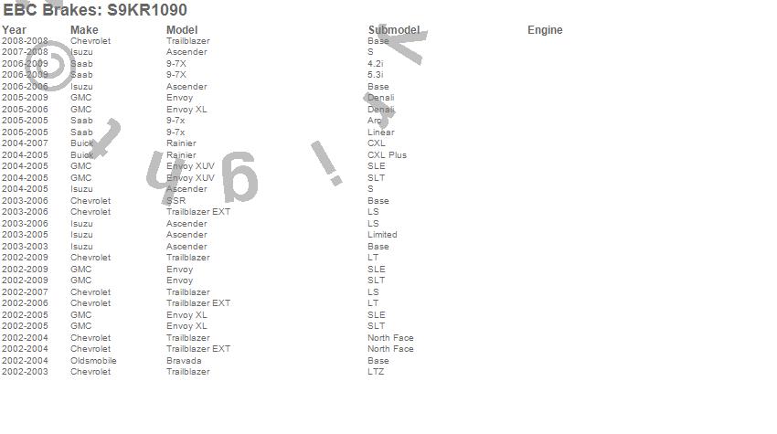 Below is an abbreviated list of applications for the S9 Kits Yellowstuff and USR Rotors.
