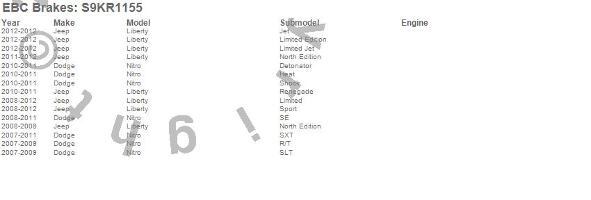 Below is an abbreviated list of applications for the S9 Kits Yellowstuff and USR Rotors.