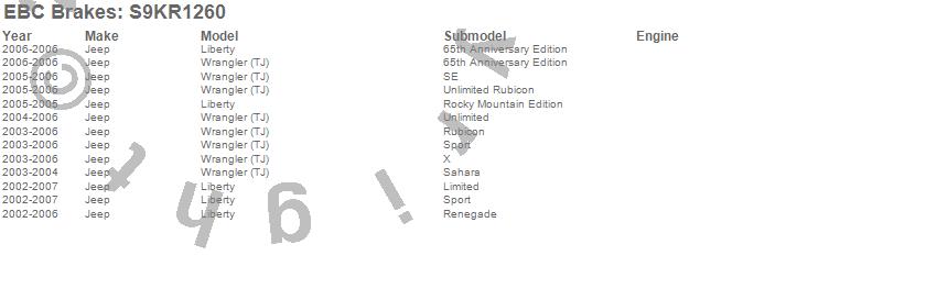 Below is an abbreviated list of applications for the S9 Kits Yellowstuff and USR Rotors.