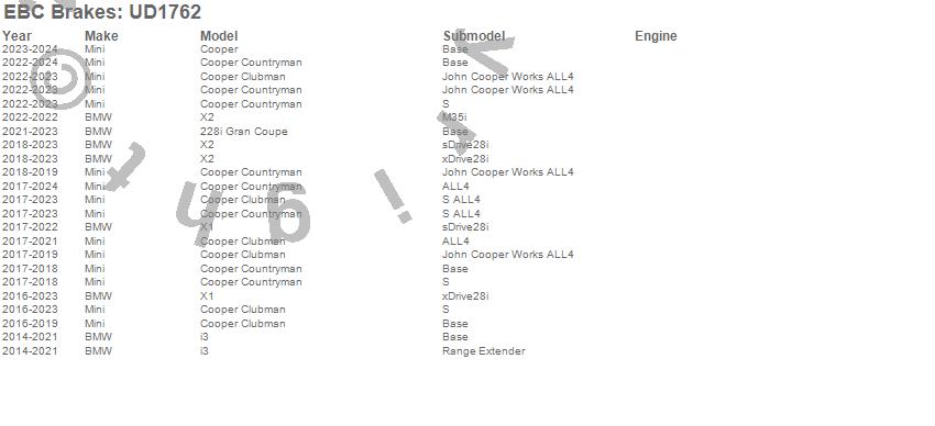 Below is an abbreviated list of applications for the Ultimax OEM Replacement Brake Pads.