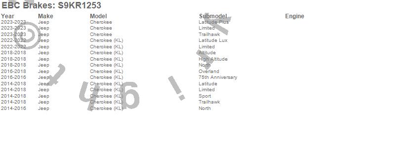 Below is an abbreviated list of applications for the S9 Kits Yellowstuff and USR Rotors.