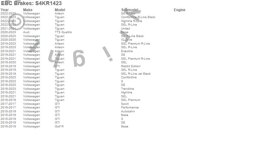 Below is an abbreviated list of applications for the S4 Kits Redstuff and USR Rotor.